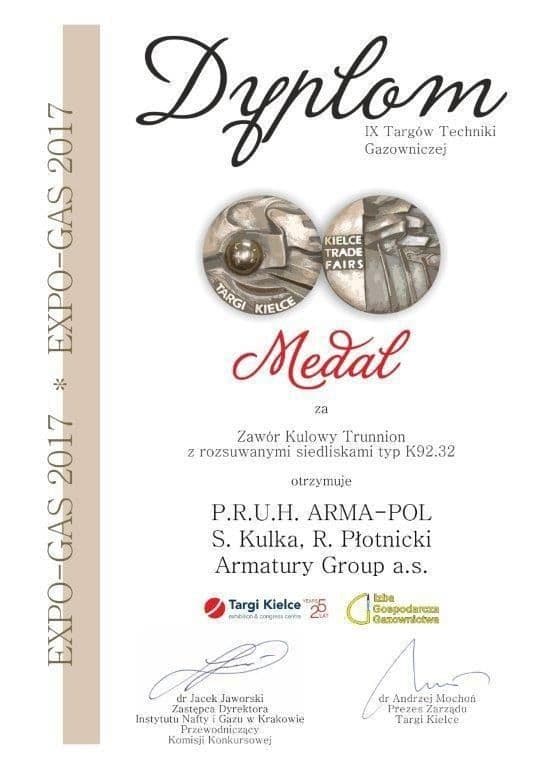Kulový kohout společnosti ARMATURY Group získal na výstavě EXPO-GAS v Polsku ocenění