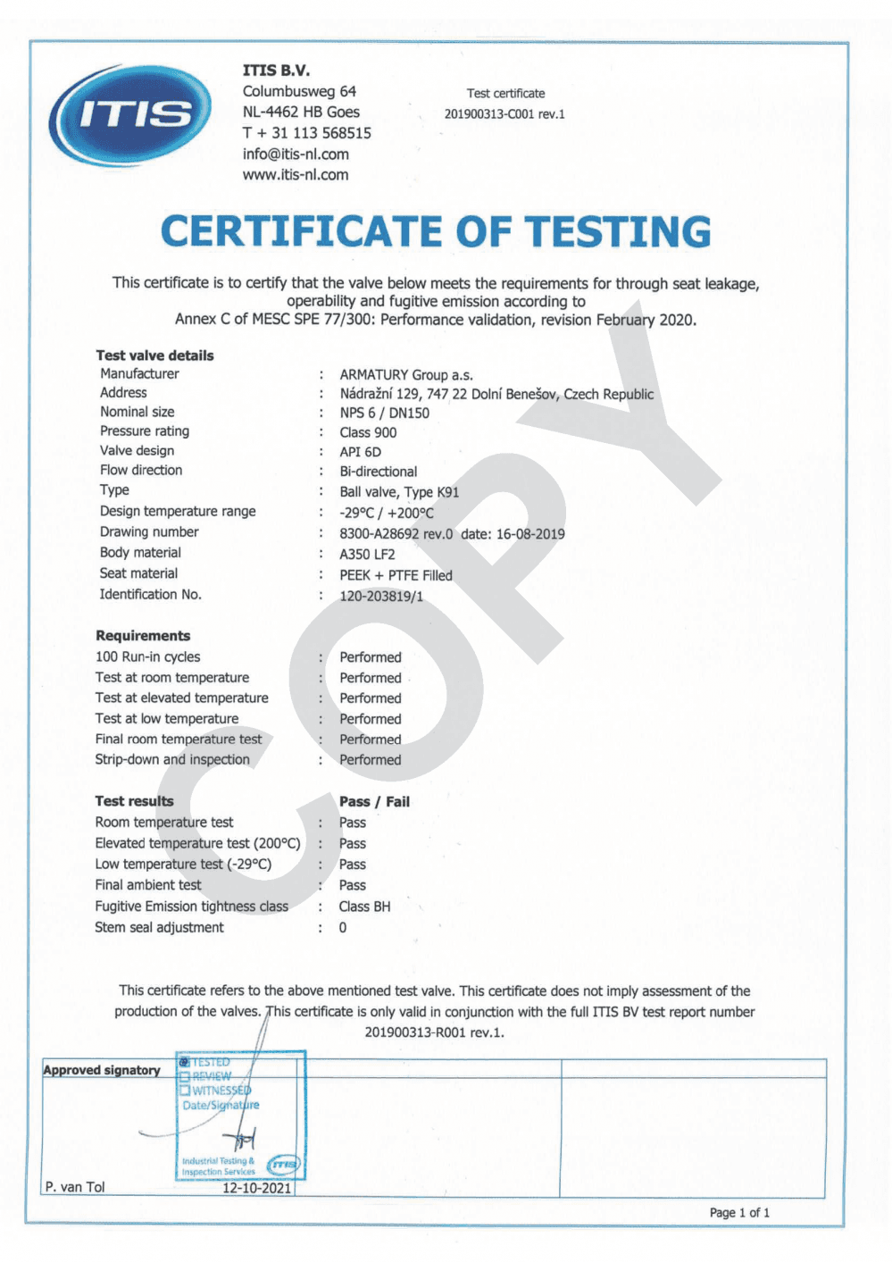 Společnost ARMATURY Group rozšířila své výrobní portfolio o novou řadu kryogenních kulových kohoutů. Vývoj těchto speciálních armatur, které mohou být vystaveny mínusovým teplotám až do -196°C, trval necelé tři roky. V rámci vývojového úkolu firma zavedla novou technologii výroby a zkoušení, na novém kryogenním zkušebním zařízení úspěšně odzkoušela vyrobené prototypy.