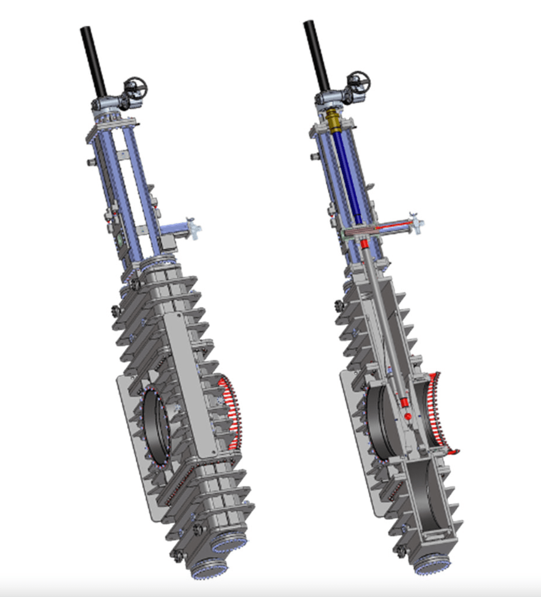 Vexve Experten entwickelten für diesen Anwendungsfall ein spezielles, aber bewährtes, Doppelplatten-Schieberkonzept mit den folgenden Merkmalen: