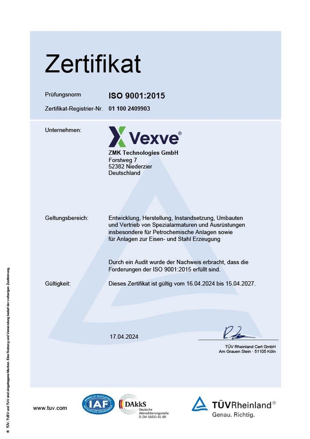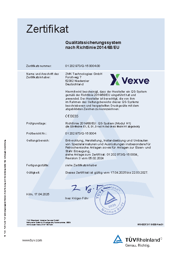 Die Produktionseinheit für die Vexve ZMK-Produkte ist die ZMK Technologies GmbH.