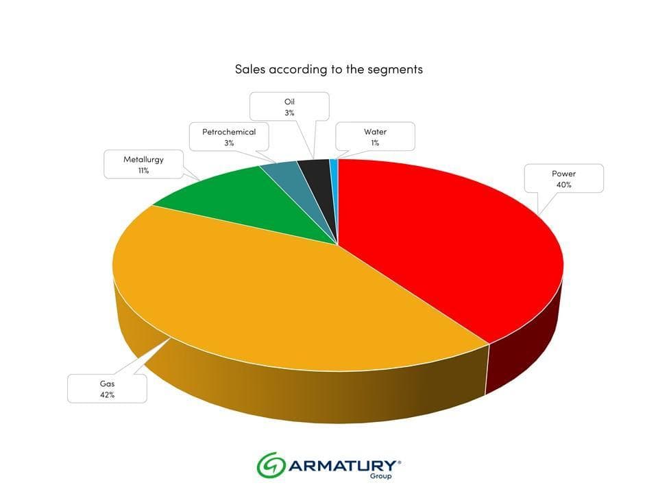 The fact that the division into segments is the right step is also proven by the results of sales according to the segments. Gas and power are in first place with a clear lead of 42 % and 40 %, followed by metallurgy (11 %). Petrochemicals, as well as oil and water, closed 2021 at sales at 3 % and 1 %.