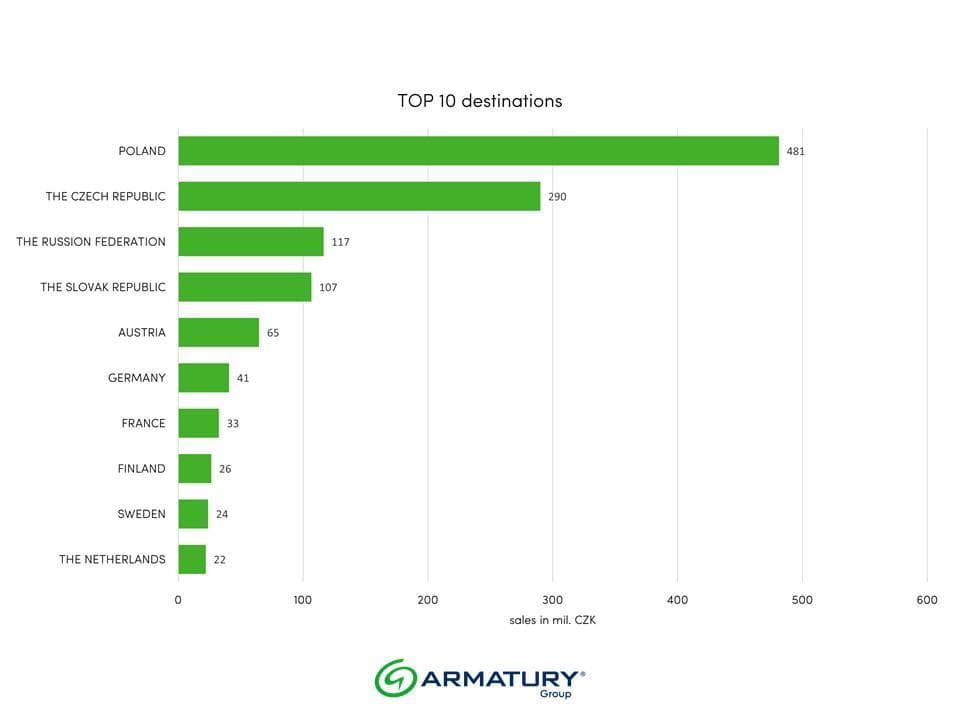 The winner of the imaginary competition in the TOP destinations by sales is Poland, followed by the Czech Republic, the Russian Federation, the Slovak Republic, Austria, Germany, France, Finland, Sweden and the TOP 10 closes the Netherlands.