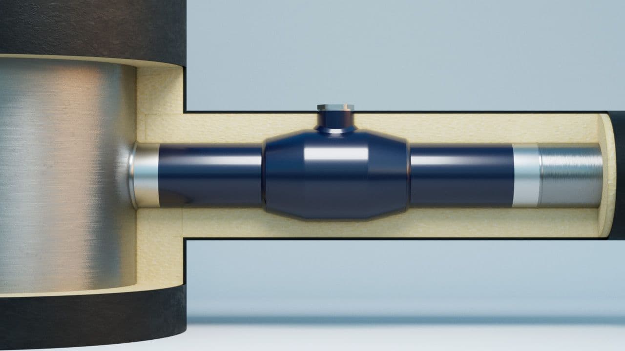 alkuliitäntä myöhemmin rakennettavalle verkoston haaralle (matalakaraventtiilit), asennetaan normaalisti esieristettyjen putkistojen asennuksen yhteydessä (alkuliitäntä voidaan eristää kokonaan)