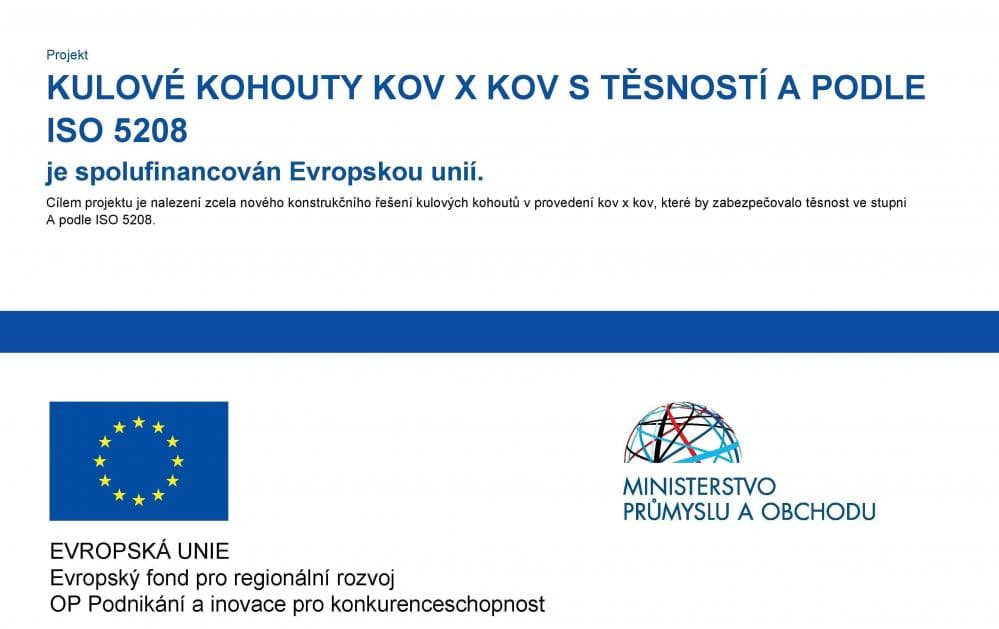 Kulové kohouty jsou hlavním bodem projektu, který nese název „Kulové kohouty kov x kov s těsností A podle ISO 5208“, reg. č. projektu CZ.01.1.02/0.0/0.0/15_018/0004538.