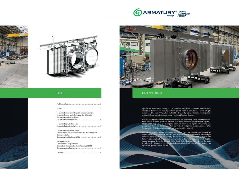 Na podporu jejich aktivit byl vytvořen nový , který je již koncipován zcela jinak než všechna předešlá vydání. Jedná se o ucelený přehled vyráběných speciálních armatur pro hutní závody, bez rozměrových tabulek a detailních popisů. Katalogové listy budou zasílány zákazníkům v případě jejich zájmu o konkrétní typ armatury. Nový katalog zahrnuje i nové typy armatur, a hlavně zohledňuje investici do nového obráběcího centra, které nám právě v oblasti hutních armatur umožňuje vyrábět ještě větší světlosti armatur.