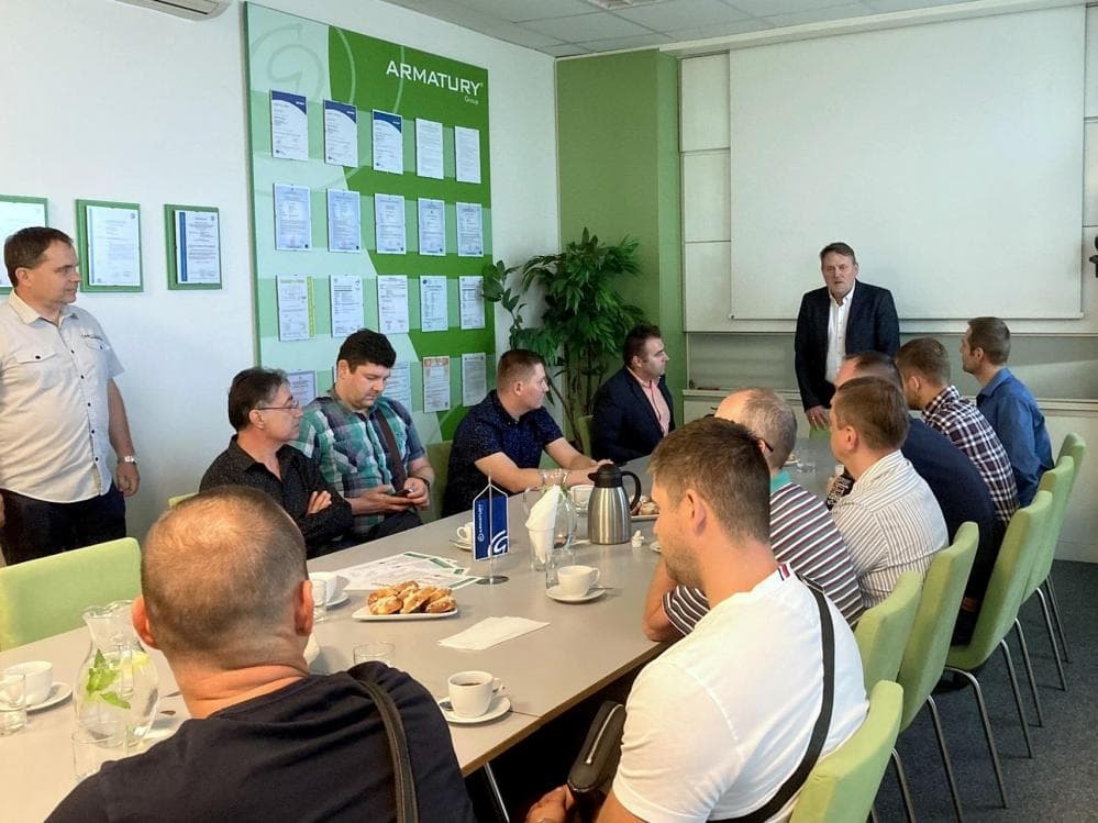 Celá konference byla rozdělena do dvou částí, v ranních hodinách započala v zasedacích místnostech v ARMATURY Group. Zde proběhla registrace, seznámení s bezpečnostními pokyny a následné přivítání, kterého se ujal Sami Leinonen, obchodní ředitel segmentu Hutnictví a Zdeněk Kročil, vedoucí prodeje Střední Evropy. Následovala dvouhodinová prohlídka výrobních hal, technologického zázemí a vybavení výrobního závodu ARMATURY Group. Účastníci ocenili moderní vybavenost, čistotu a bezpečnost pracovního prostředí. Rovněž nahlédli na rozpracovanost výrobních zakázek a živě se zajímali o obchodní případy, které směřují právě do jejich závodů.