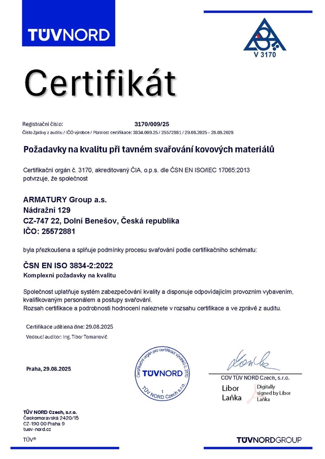 Certifikáty - ARMATURY Group a.s.