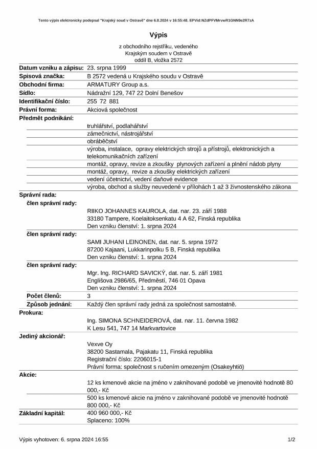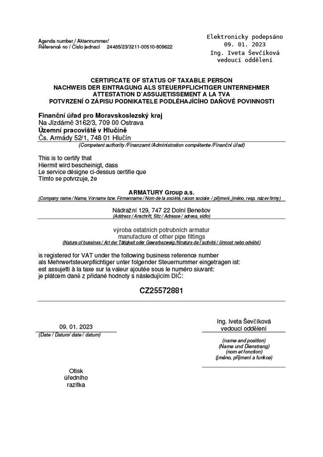 Potvrzení o zápisu podnikatele podléhajícího daňové povinnosti