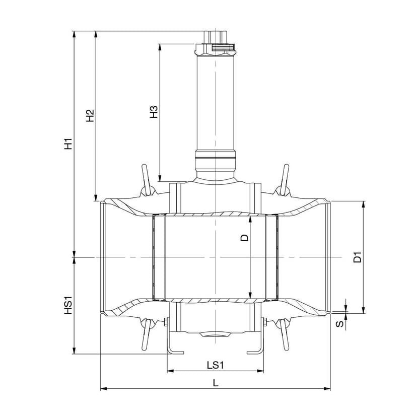| DN | PN | Produktnr. | D | D1 | D2 | D4 | D5 | H1 | H2 | H3 | HS1 | L | LS1 | LS2 | S | 6K1 | 6K2 | Kg |