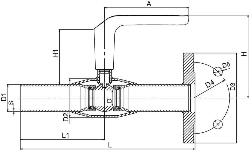 | DN | PN | Produktnr. | A | D | D1 | D2 | D3 | D4 | D5 | H | H1 | L | L1 | S | Kg |