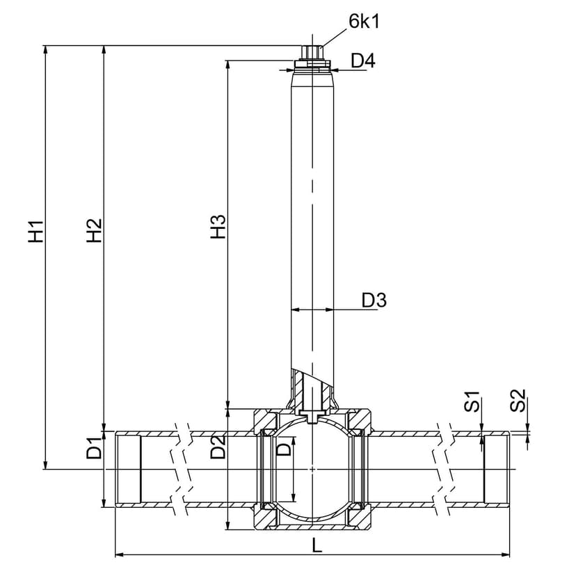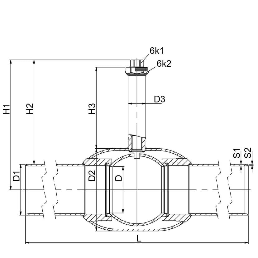 | DN | PN | Produktnr. | D | D1 | D2 | D3 | D4 | H1 | H2 | H3 | L | S1 | S2 | 6K1 | 6K2 | Kg |