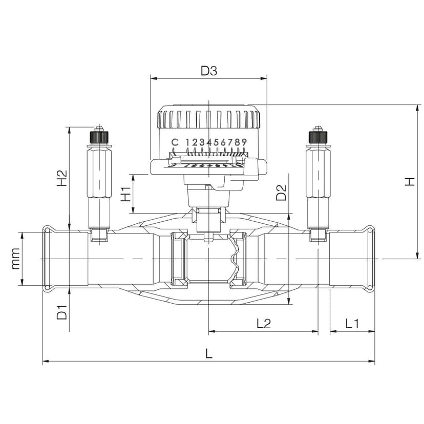 | DN | PN | Produktnr. | D1 | D2 | D3 | H | H1 | H2 | L | L1 | L2 | Kg |