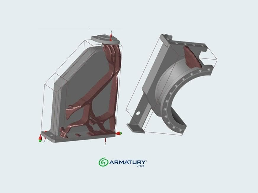 To help with this task, the ARMATURY Group used a number of innovative tools such as topological optimization to generate a design based on boundary conditions. The result can be very interesting structures, as can be seen in the attached images.