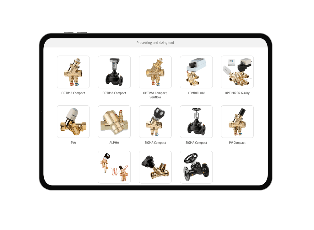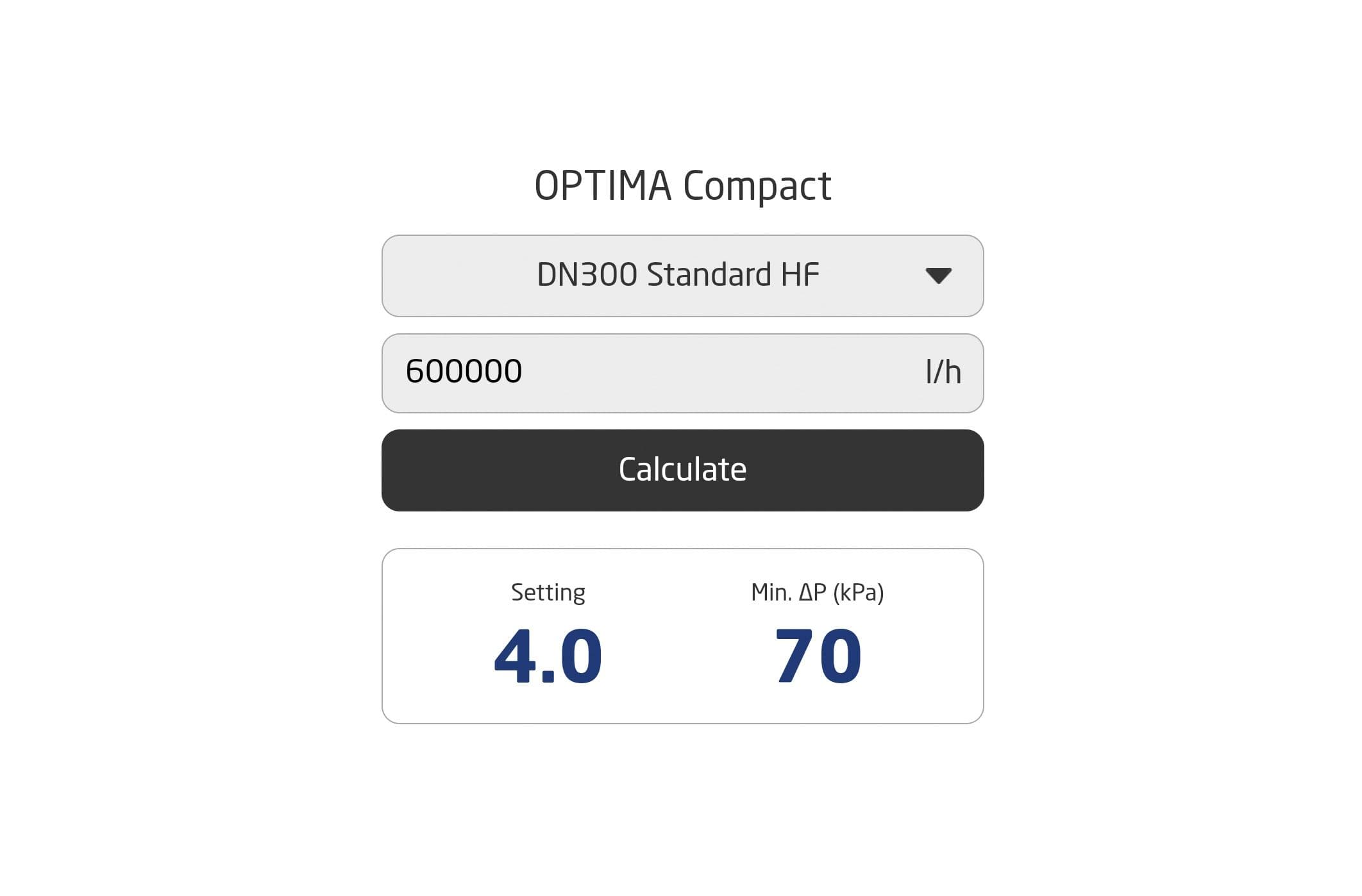 Simply enter the valve dimension and the required flow, and the app will calculate the relevant valve setting and minimum differential pressure.