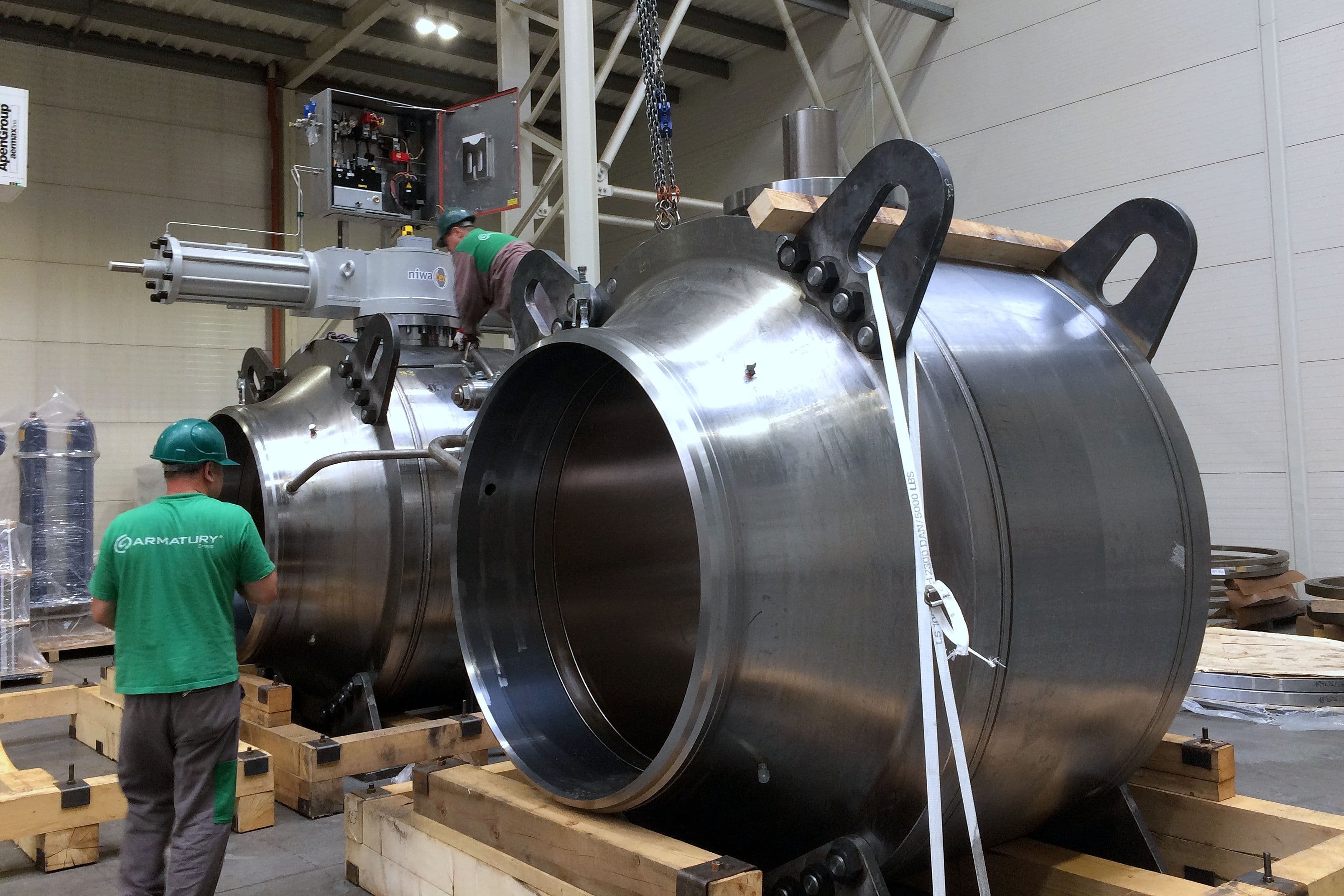 We managed to obtain a substantial part of the required valves in an electronic auction. The largest of the valves supplied were DN 1400 overhead ball valves with hydropneumatic actuators. The weight of one of these ball valves reaches 30 tonnes! We produced these valves in just four months after receiving the order.
