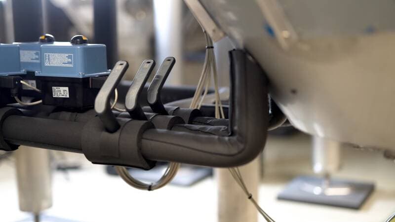 The Vexve X series stainless steel shut-off valves, which also have domestic water approval, ensure that the cooling and heating lines can be closed reliably in possible actuator fault situations.
