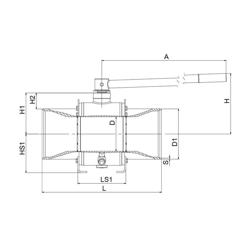 | DN | PN | Product no. | A | D | D1 | D2 | D3 | D4 | H | H1 | H2 | H3 | HS1 | L | LS1 | LS2 | S | Kg |