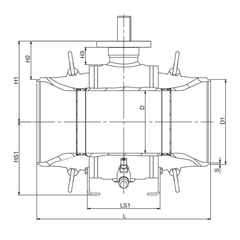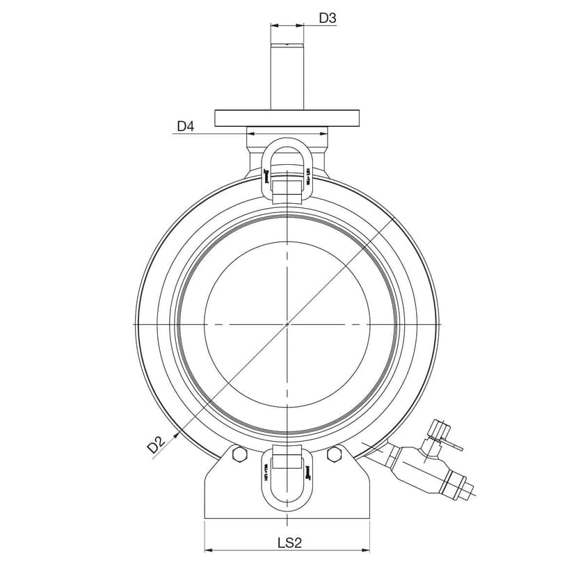 DN 150 are equipped with: drain valve, DN 200-1200 are equipped with: lifting lugs, mounting stand Drain valve: DN 15 for DN 150–200 valves, DN 20 for DN 250-450 valves, DN 32 for DN 500-1200 valves |