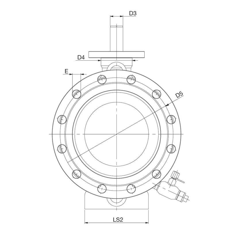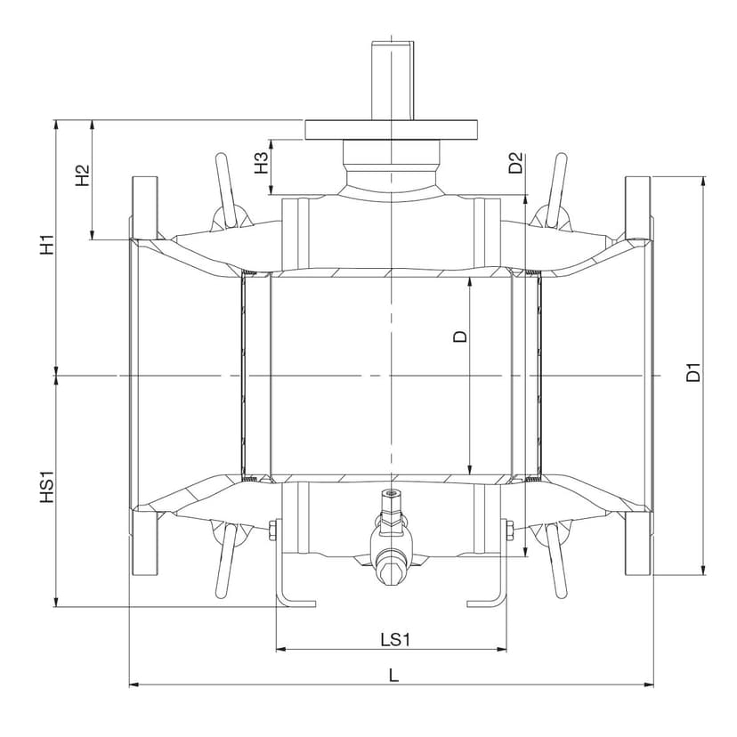 DN 150 are equipped with: drain valve, DN 200-900 are equipped with: lifting lugs, mounting stand Drain valve: DN 15 for DN 150–200 valves, DN 20 for DN 250-450 valves, DN 32 for DN 500-900 valves |