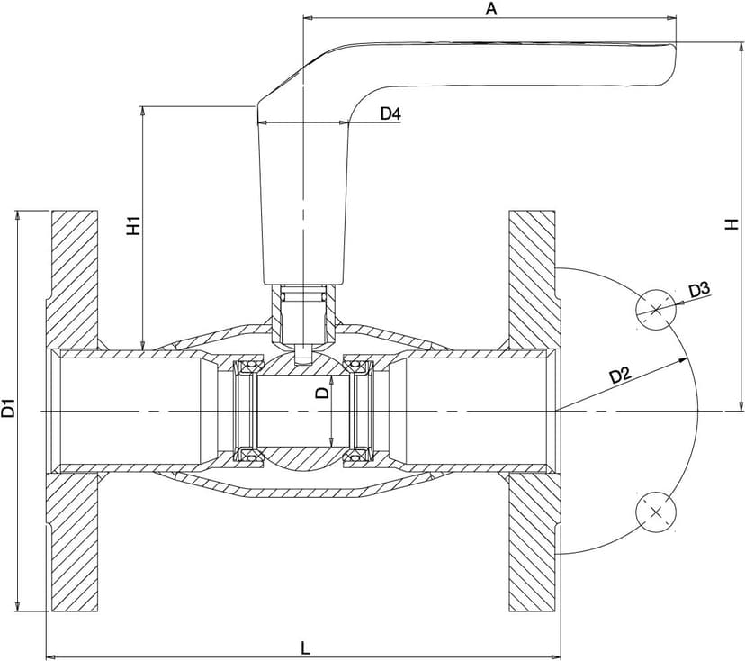 | DN | PN | Product no. | A | D | D1 | D2 | D3 | D4 | H | H1 | L | Kg |