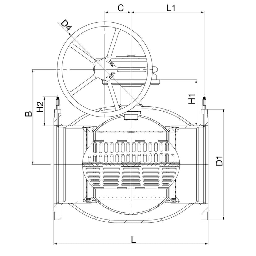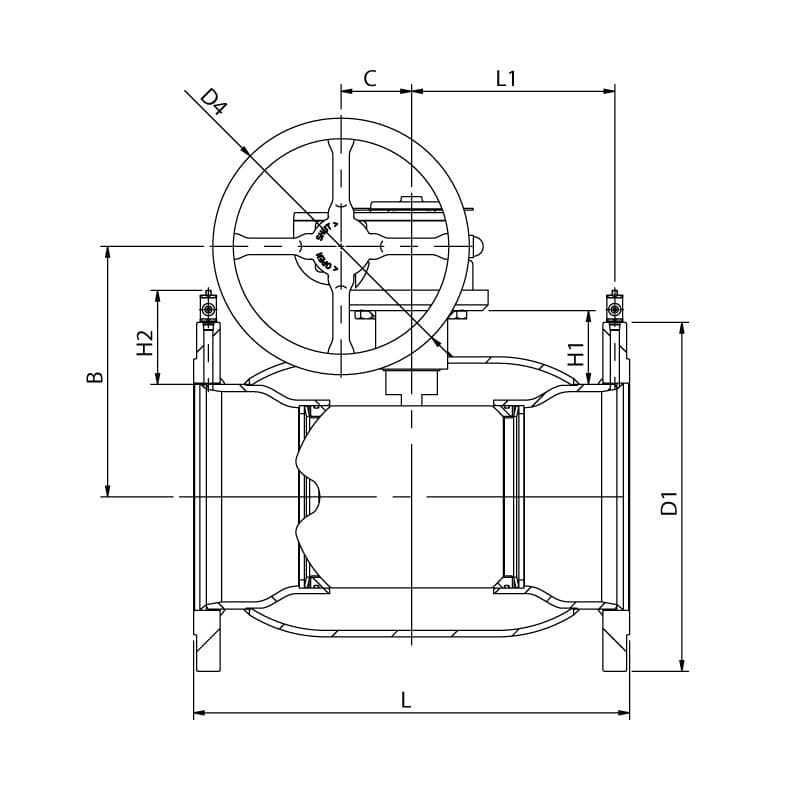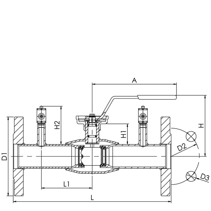 | DN | PN | Product no. | A | B | C | D | D1 | D2 | D3 | D4 | E | H | H1 | H2 | L | L1 | Kg |