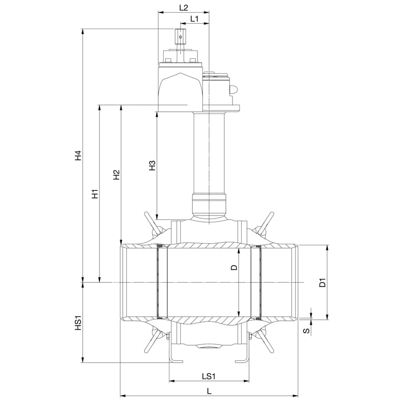 | DN | PN | Product no. | D | D1 | D2 | D4 | D5 | H1 | H2 | H3 | H4 | HS1 | L | L1 | L2 | LS1 | LS2 | S | W1 | W2 | Kg |