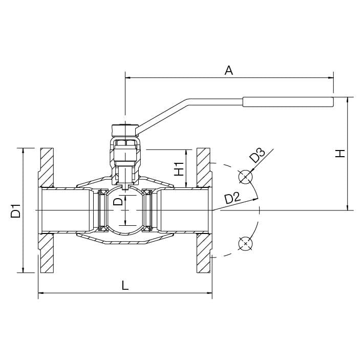 | DN | PN | Product no. | A | D | D1 | D2 | D3 | H | H1 | L | Kg |