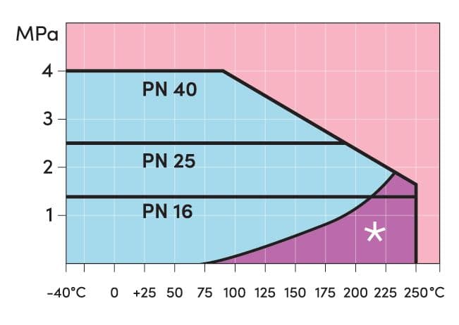 Below -20 °C contact manufacturer. Lowest allowed ambient temperature -40 °C. *) Not for superheated steam.