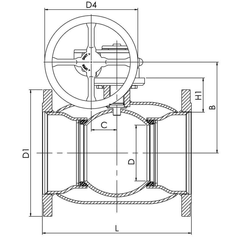 | DN | PN | Product no. | A | B | C | D | D1 | D2 | D3 | D4 | E | H1 | L | Kg |