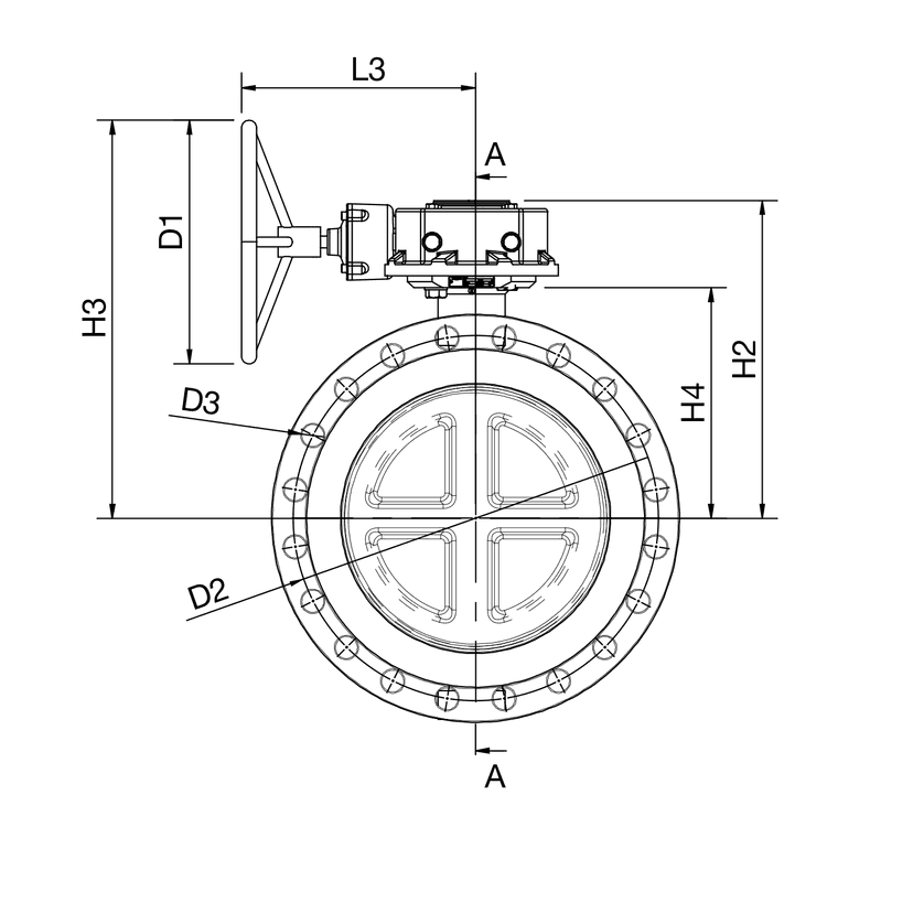| DN | PN | Product no. | D | D1 | D2 | D3 | H1 | H2 | H3 | H4 | L | L1 | L2 | L3 | Kg |