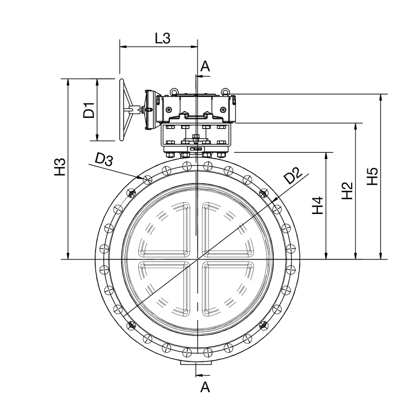| DN | PN | Product no. | D | D1 | D2 | D3 | H1 | H2 | H3 | H4 | H5 | L | L1 | L2 | L3 | Kg |