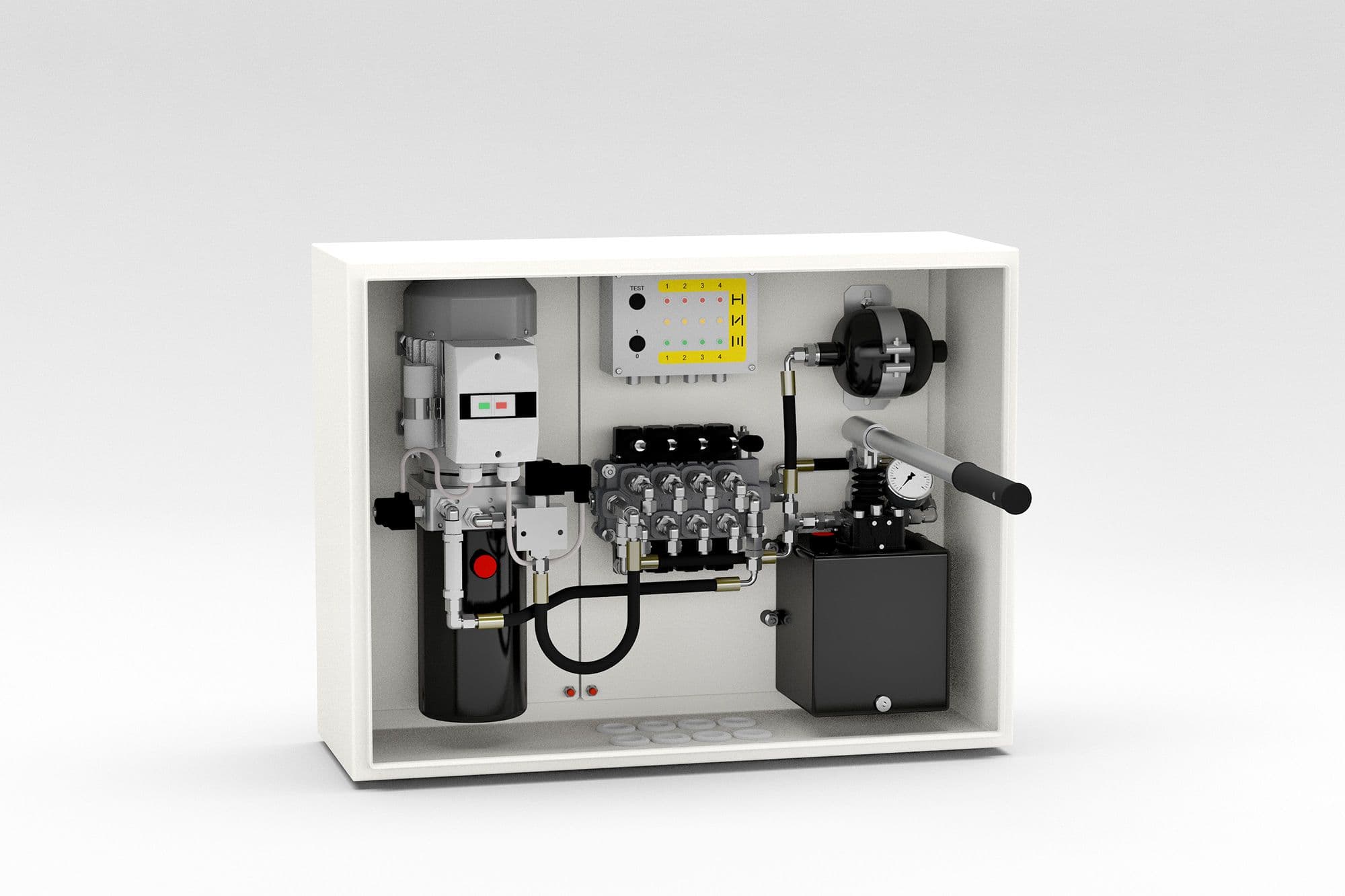 This is an enhanced version of the HCU Manual control unit. The HCU Manual+ control cabinet is equipped with an electric hydraulic pump unit for convenient operation.