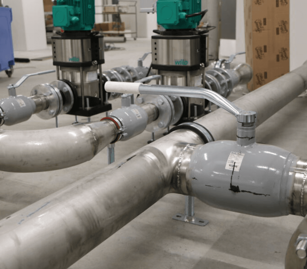 Lisäksi IV-koneissa (lämmitys- ja lämmöntalteenotto) on käytössä Vexven viime vuonna lanseeraamaan X-sarjan teräksisiä sulku- ja linjasäätöventtiileitä puristuspääliitoksilla.