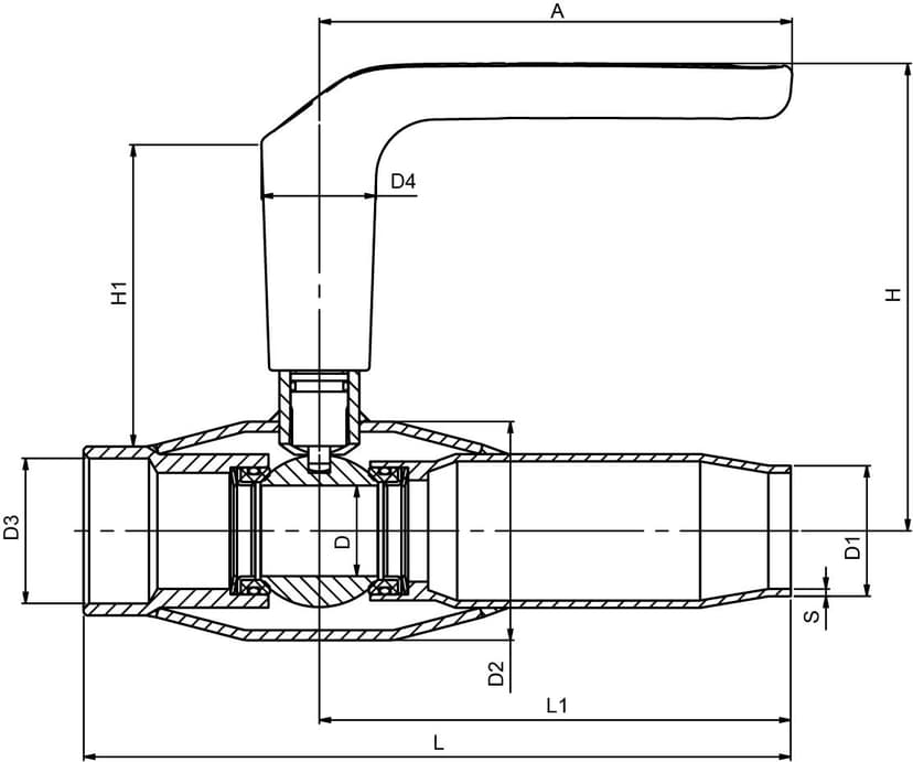 | Pallo | DN 10-50: Haponkestävä teräs, AISI316L (1.4404) |