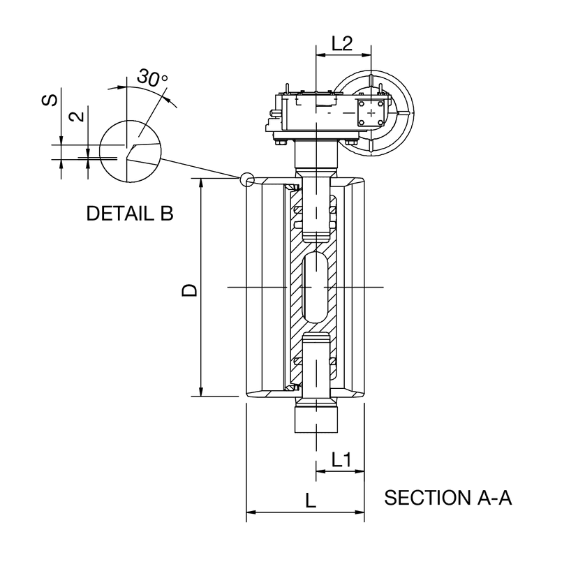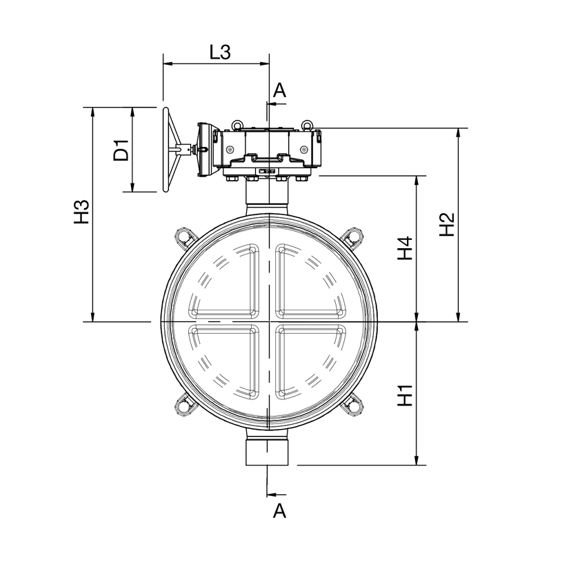 | DN | PN | Tuotenro. | D | D1 | H1 | H2 | H3 | H4 | L | L1 | L2 | L3 | S | Kg |